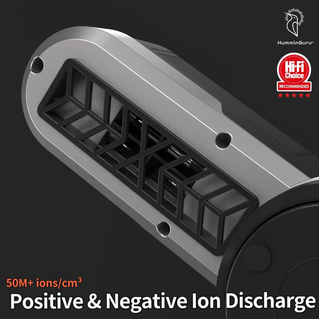 Με δύο εξόδους πλάσματος και έναν ανεμιστήρα υψηλής ταχύτητας, το HumminGuru Orbit αποφορτίζει ταυτόχρονα πάνω από 50 εκατομμύρια ιόντα θετικού και αρνητικού φορτίου ανά κυβικό εκατοστό. Ο καινοτόμος "περιστρεφόμενος" σχεδιασμός του επιτρέπει την άμεση εκπομπή των ιόντων στην επιφάνεια του δίσκου κατά τη διάρκεια 10 αυτόματων περιστροφών, εξασφαλίζοντας υψηλή αποτελεσματικότητα στην εξουδετέρωση του στατικού ηλεκτρισμού.