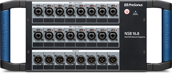 Σχεδιασμένο για να λειτουργεί άψογα με κονσόλες και συσκευές εγγραφής της PreSonus StudioLive Series III, το PreSonus NSB 16.8 είναι ένα stage box 16 εισόδων, το οποίο ρυθμίζει γρήγορα και εύκολα τη μετάδοση σημάτων από το stage στο μίκτη μέσω ενός δικτύου AVB.