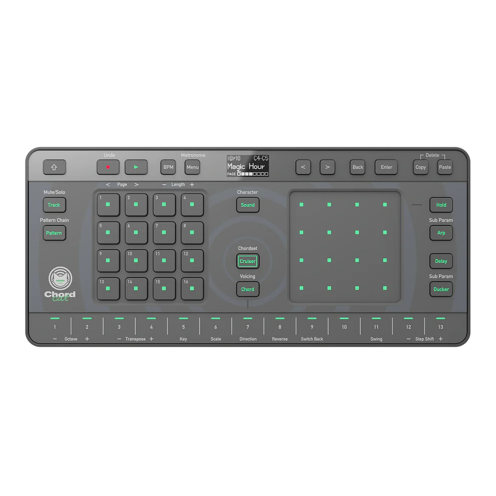 Μικρό, ελαφρύ και φορητό groovebox, εξοπλισμένο με τον αλγόριθμο Chord Cruiser που παρέχει πρόσβαση σε πάνω από 110.000 συνδυασμούς και 18 προκαθορισμένα σύνολα συγχορδιών, για παραγωγή μουσικής χωρίς την ανάγκη προηγμένης γνώσης μουσικής θεωρίας. Με ένα sequencer 8 κομματιών, 145 ήχους οργάνων, 16 drum kits, τρία εφέ ελεγχόμενα από XY, ευέλικτα εργαλεία διαρρύθμισης και λειτουργίες εκτέλεσης με καθοδήγηση από κλειδιά/κλίμακες, το Chordcat καθιστά εύκολη τη δημιουργία μελωδιών, ρυθμών και δυναμικών μοτίβων. Τροφοδοτείται από USB-C ή 6 μπαταρίες AA (≈5 ώρες) και διαθέτει δυνατότητα ενσωμάτωσης σε DAW μέσω του Chordcat Manager. Διαστάσεις: 247×111×33mm, βάρους 0,4kg.