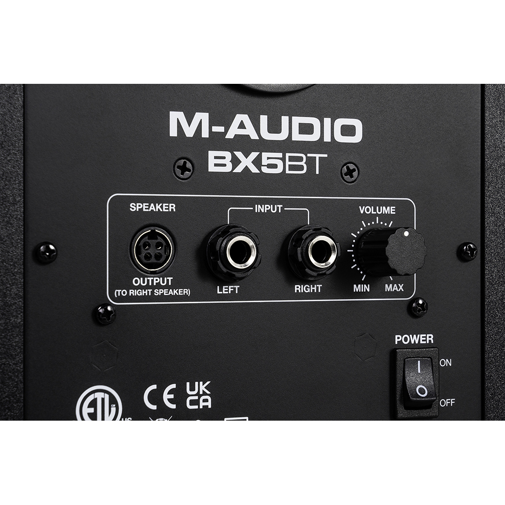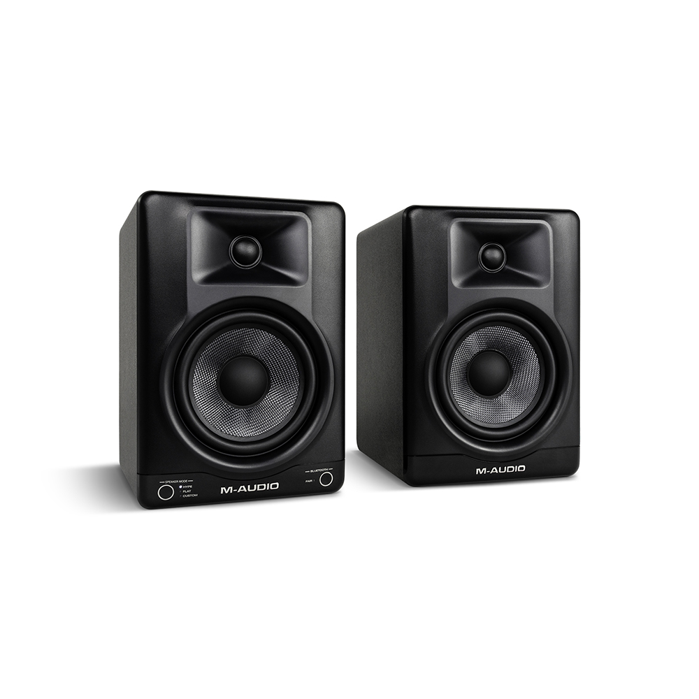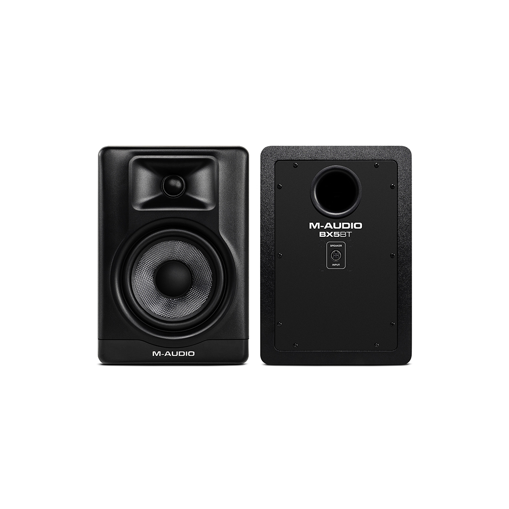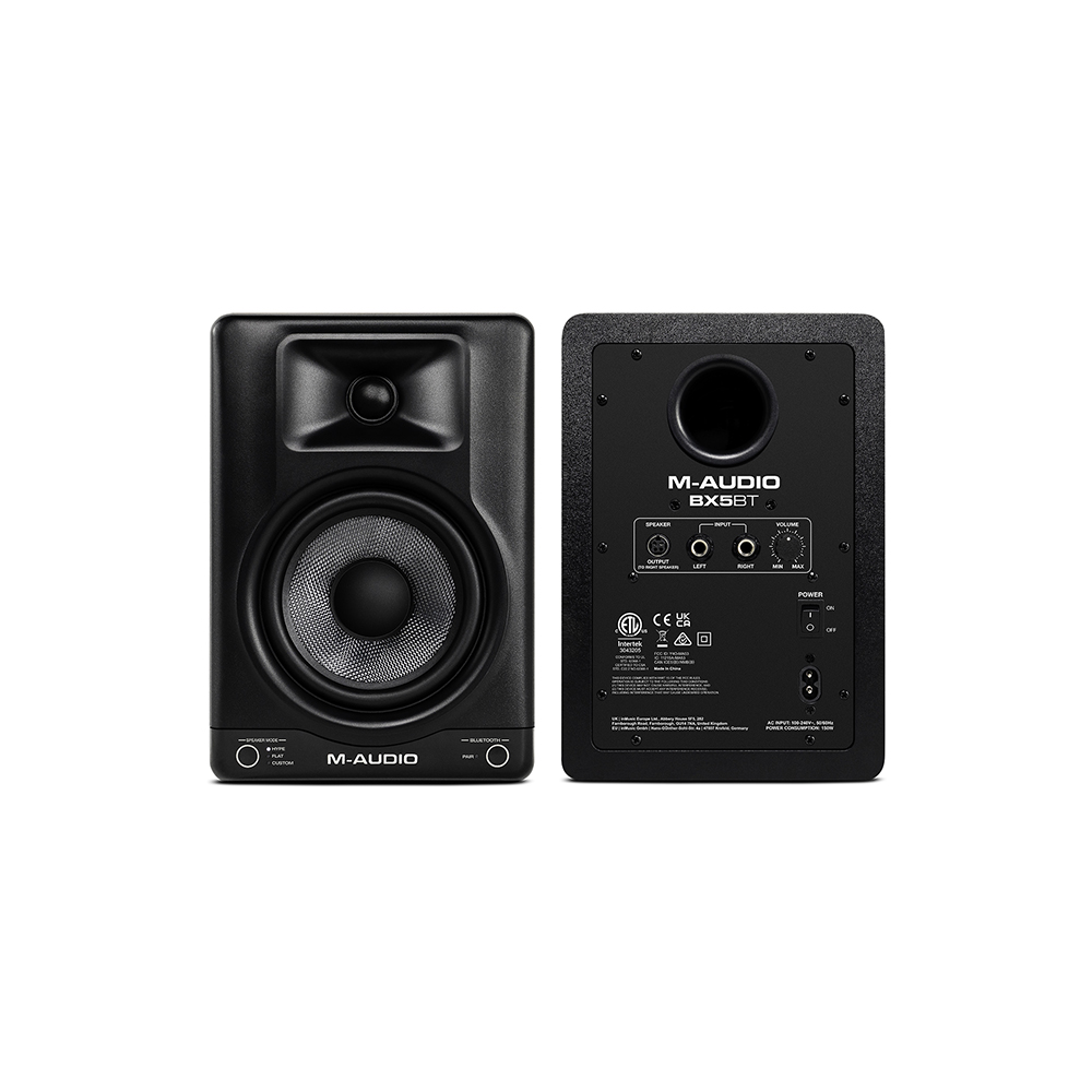 M-Audio BX5BT – Ζεύγος ενεργών 5″ studio monitors με Bluetooth & DSP. Με συνολική ισχύ 120W bi-amp, woofer Kevlar 5″, Bluetooth 5.0, reference modes FLAT / HYPE / CUSTOM και έλεγχο μέσω M-Audio Studio Control app, τα BX5BT προσφέρουν επαγγελματικό ήχο σε compact μέγεθος για home studio, περιεχόμενο, παραγωγή & gaming.