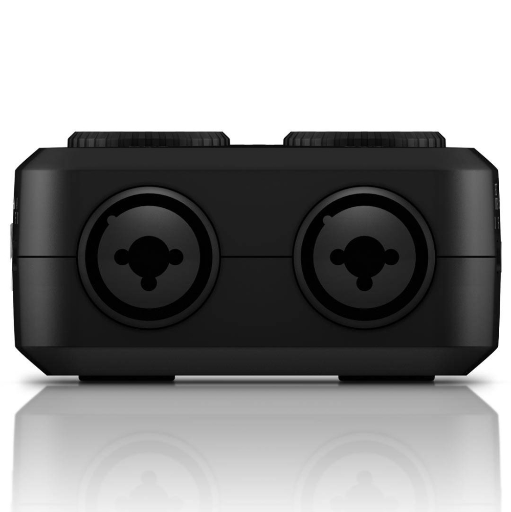 2 XLR / ¼” combo guitar, mic & line inputs Class-A preamps with improved gain range and phantom power 2 balanced 1/4” outputs  Headphone out with direct monitoring MIDI 2.5mm IN/OUT with breakout cables Improved ergonomic controls for maximum precision Runs off 2 AA batteries (included), bus power or optional PSU Rubberized finish and textured controls for reliable field use Includes Lightning, USB-C and USB-A cables Designed and made in Italy