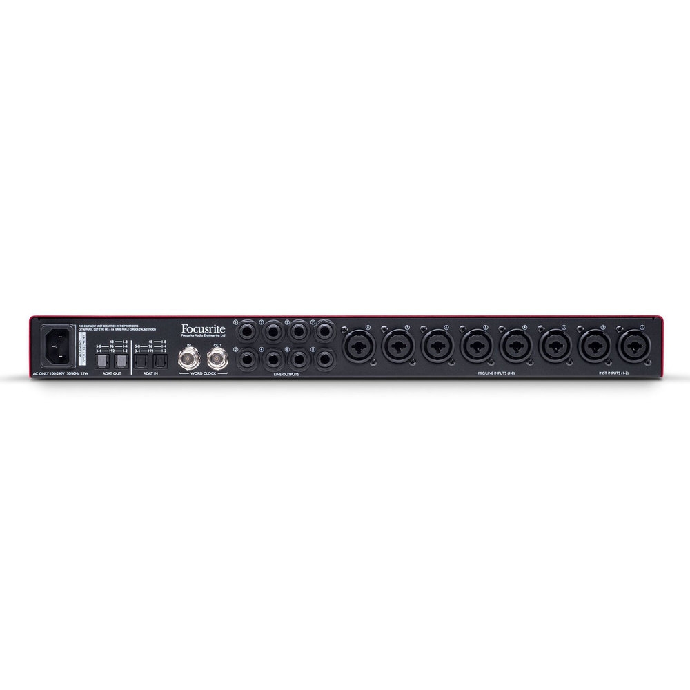 8πλος Scarlett 2ND GEN προενισχυτής μικροφώνου με ADAT I/O, νέας γενιάς converting 192 kHz στα 24 bit με 107dB δυναμική περιοχή. Περιλαμβάνει 2 INSTR Hi - Z εισόδους, high headroom και Compression σε κάθε κανάλι, 8 combo IN, 8 analog out TRS , ADAT I/O (AD/DA), WORD CLOCK I/O, Phantom Power ανά 4 κανάλια, επιλογή sample rate: 44,1 - 48 - 88,2 - 96 - 176,4 - 192 kHz, επιλογή sync: internal - wordclock - ADAT. Freq. Resp: 20 Hz - 20 kHz. Ιδανικό για τύμπανα, κιθάρες, φωνές, κατάλληλο για κάθε live αλλά και studio εφαρμογή. Στο πακέτο περιλαμβάνονται τα ProTools First, Focusrite RED plug-in suite, softtube-time & tone bundle plug-in.