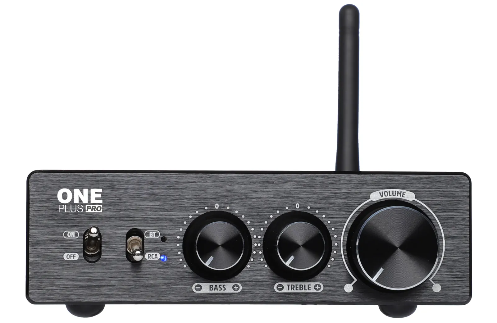 One Plus PRO, ολοκληρωμένος ενισχυτής ισχύος 2 x 85W RMS / 8Ω, 2 x 108W RMS / 4Ω, class D, με ιδιαίτερα μικρό μέγεθος ιδανικός για Hi Fi συστήματα και μόνιμες εγκαταστάσεις σε επαγγελματικούς χώρους. Ο νέος ενισχυτής διαθέτει είσοδο RCA και Bluetooth 5.2 για streaming μουσικής ασύρματα από φορητές συσκευές και υπολογιστές. Διαθέτει έξοδο (line out) για σύνδεση με άλλο ενισχυτή ή subwoofer. Στο μπροστινό μέρος εκτός από τον ρυθμιστή έντασης υπάρχει διακόπτης επιλογής ανάμεσα στο εισερχόμενο σήμα RCA ή Bluetooth, διακόπτης ON/OFF και ρυθμιστικά Bass & Treble. Τα υλικα κατασκευής του είναι εξαιρετικής ποιότητας όπως τελεστικοί TPA3255 & 5NE5532 OP και πυκνωτές ELNA και NICHICON. Στο κύκλωμα του Bluetooth χρησιμοποιεί το Qualcomm QCC304X high quality receiving chip με πολύ χαμηλό latency.Τεχνικά Χαρακτηριστικά:Κανάλια: 2Ισχύ: 2 x 108W RMS / 4Ohm και 2 x 85W RMS / 8OhmSpeaker impedance: 4-8ΩΑπόκριση συχνότητας: bass ±12dB, treble ±10dB Signal to Noise Ratio: 90dBΈισοδοι: RCA, BluetoothΈξοδοι: AUXBluetooth: 5.2 Υποστηριζει 16-24bit 44.1-48khz Supported format: sbc/aac/aptx/aptx-hdΔιαστάσεις (ΠxΒxΥ): 114 x 168 x 32mmΒάρος: 0.635kg