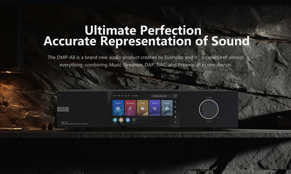 Η Eversolo επιστρέφει αυτή τη φορά με το DMP-A8, ένα network player και DAC υψηλής ποιότητας και απίστευτης ευελιξίας. Αποτελώντας το επίκεντρο των σύγχρονων συστημάτων HiFi, προσφέρει ένα ευρύ φάσμα χρήσεων, από την αναπαραγωγή τοπικών αρχείων έως την πρόσβαση στη μουσική σας βιβλιοθήκη από συσκευές δικτύου ή τις αγαπημένες σας εφαρμογές streaming. Ο προσεκτικός σχεδιασμός του εξασφαλίζει επίσης την πιο καθαρή και ακριβή αναπαραγωγή ήχου.