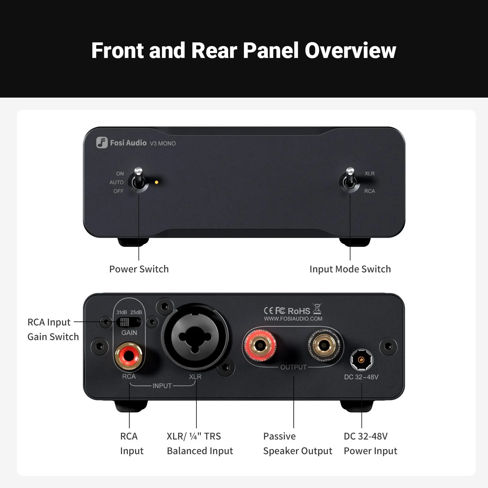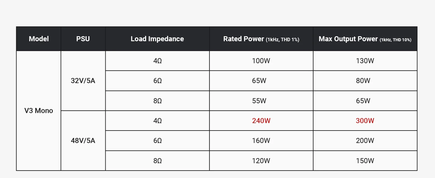 Μίνι μονομπλόκ ενισχυτής: Σχεδιασμένος για τους λάτρεις της υψηλής πιστότητας ήχου, ο V3 Mono σας επιτρέπει να τροφοδοτήσετε ένα παθητικό ηχείο με έναν ενισχυτή, παρέχοντας ονομαστική ισχύ έως 240 W @4Ω. Προσφέρει την ευελιξία να δημιουργήσετε εύκολα το δικό σας σύστημα ήχου 2/3/4/5 καναλιών για το σπίτι σας. Ο V3 Mono μπορεί να χρησιμεύσει ως ενισχυτής ισχύος για πολυκαναλικούς AVR, συμπληρώνοντας την ισχύ εξόδου για να τροφοδοτήσει εύκολα ηχεία υψηλής ισχύος σε συστήματα home theater.