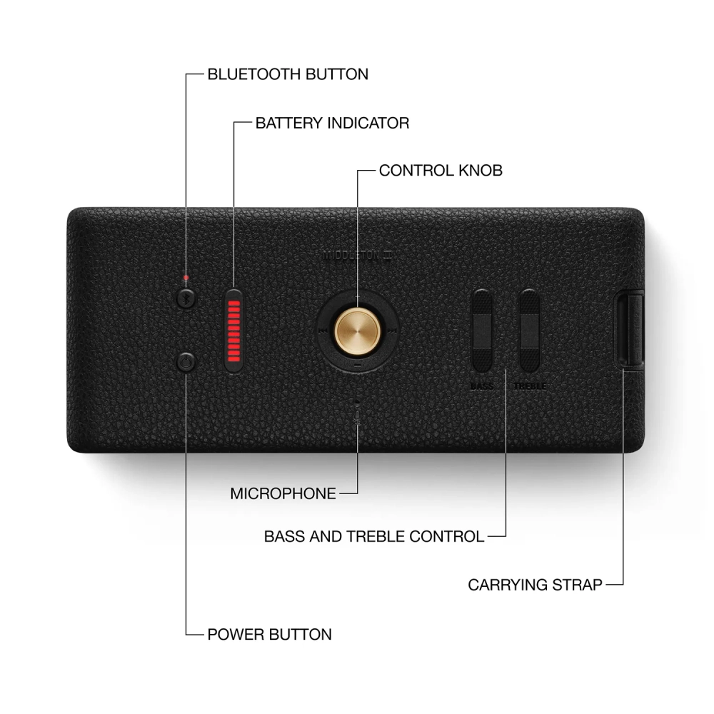 Φτιαγμένο για όσους δεν κάνουν πίσω σε στιλ και ήχο, το Marshall Middleton II είναι ένα φορητό bluetooth ηχείο που παίρνει σοβαρά τη μουσική. Με χαρακτηριστική εμφάνιση εμπνευσμένη από τους κλασικούς ενισχυτές της Marshall, προσφέρει μια εμπειρία ακρόασης που είναι εξίσου ουσιαστική όσο και εμβληματική. Με ισχύ 60W από δύο woofer 3” και δύο tweeter 0,6”, το Middleton II γεμίζει τον χώρο με δυνατό, γεμάτο σώμα ήχο, χωρίς να πιέζεται στις υψηλές εντάσεις. Η τεχνολογία True Stereophonic προσφέρει πραγματικό πολυκατευθυντικό ήχο 360°, έτσι δεν έχει σημασία πού στέκεσαι – η εμπειρία παραμένει σταθερά ισορροπημένη και δυναμική. Η μπαταρία του κρατάει πάνω από 30 ώρες συνεχούς αναπαραγωγής, και μια γρήγορη φόρτιση 20 λεπτών σου δίνει περισσότερες από 2 ώρες χρήσης. Η πλήρης φόρτιση ολοκληρώνεται σε περίπου 4,5 ώρες μέσω USB-C. Το ίδιο το ηχείο λειτουργεί και ως powerbank, ώστε να φορτίζεις άλλες συσκευές εν κινήσει χωρίς να θυσιάζεις τη μουσική. Το Middleton II είναι σχεδιασμένο για να αντέχει. Η κατασκευή του είναι ανθεκτική στη σκόνη και το νερό με πιστοποίηση IP67, πράγμα που σημαίνει ότι μπορεί να βυθιστεί σε νερό βάθους έως 1 μέτρο για 30 λεπτά και να συνεχίσει να παίζει σαν να μη συνέβη τίποτα. Το εξωτερικό του περίβλημα περιλαμβάνει 55% ανακυκλωμένο πλαστικό από ηλεκτρονικές συσκευές, με μηδενική χρήση PVC – ένα βήμα προς ένα πιο υπεύθυνο design. Οι φυσικοί χειρισμοί στην κορυφή – ένα joystick για ένταση, πλοήγηση και play/pause, καθώς και sliders για μπάσο και πρίμα – σε αφήνουν να προσαρμόσεις τον ήχο χωρίς εφαρμογές ή μενού. Αν όμως θες να μπεις πιο βαθιά στις ρυθμίσεις ή να κάνεις firmware updates, υπάρχει και η εφαρμογή Marshall Bluetooth. Με Bluetooth 5.3 και υποστήριξη για LE Audio (μέσω μελλοντικού update), η σύνδεση είναι σταθερή, γρήγορη και πιο αποδοτική ενεργειακά, με καλύτερη ποιότητα ήχου όταν συνδεθεί με συμβατές συσκευές. Υπάρχει επίσης υποδοχή USB-C για φόρτιση και έξοδο powerbank, και θύρα 3.5mm για σύνδεση με αναλογικές πηγές ήχου. Το Marshall Middleton II δεν είναι ένα ακόμα φορητό ηχείο. Είναι ένα compact ηχοσύστημα με χαρακτήρα, διάρκεια, ισορροπία και στΙλ, σχεδιασμένο να σε συνοδεύει παντού – από την παραλία και το πάρκο μέχρι το σαλόνι σου. Χωράει στην τσάντα σου αλλά παίζει σαν να γεμίζει μια μουσική σκηνή.