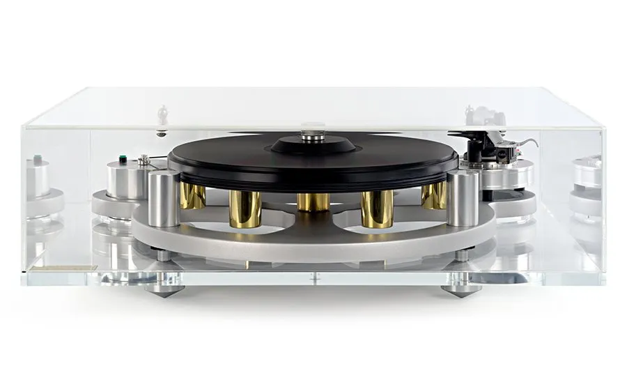 Πλατό χωρίς βραχίονα υψηλής ακριβείας κατασκευασμένο ειδικά για τοποθέτηση βραχιόνων ενεργού μήκους 9’’, Λειτουργία σε 33 1/3, 45 RPM. Συμπαγής κατασκευή σασί από ενιαίο ακρυλικό κράμα, Υπο-σασί με έδραση σε τρία ρυθμιζόμενα σημεία αναρτημένα από ελατήρια που εδράζονται σε ειδικούς πυργίσκους απόσβεσης. Ειδικά κατεργασμένος άξονας περιστροφής, χρωμονικελιούχος, θερμικά σκληρυμένος, υψηλής λείανσης και ανοχής σε λιπαινόμενο ανεστραμμένο πηγάδι, υψηλής ακριβείας. Το πλατό είναι από κατεργασμένο κράμα υψηλής συμπίεσης ακρυλικού και βινυλίου και επικαλυμμένο μέσω ειδικής κατεργασίας από υλικό αντικραδασμικής απόσβεσης με επίχρυσα αντίβαρα ισορροπίας κίνησης και αδράνειας, Εξωτερικό μοτέρ DC υψηλής τεχνολογίας. Συμπεριλαμβάνεται: Standard Arm Board για βραχίονες Rega και SME, Record Clamp, Ακρυλικό Καπάκι