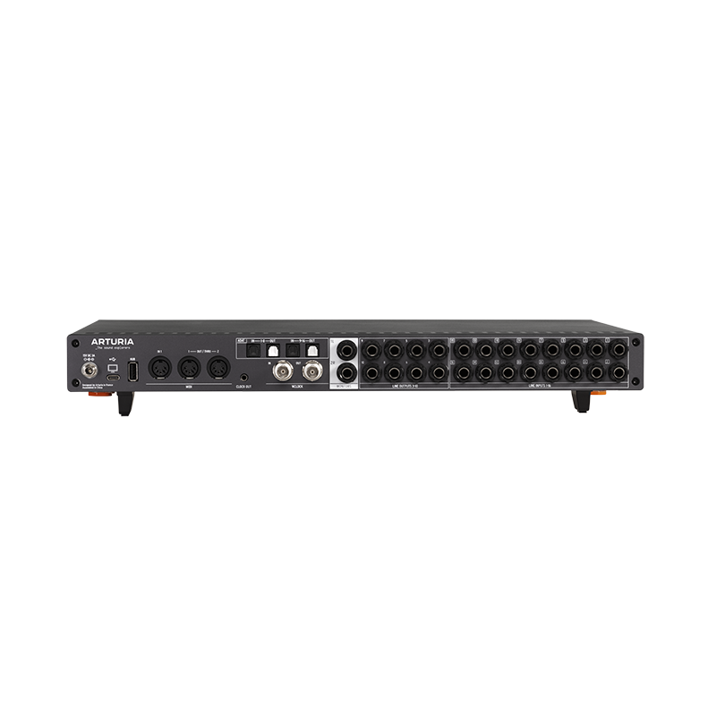 - 12 αναλογικές εξόδους συμπεριλαμβανομένων 8 εξόδων γραμμής TRS με σύζευξη DC, εξόδους στερεοφωνικής ακρόασης, εξόδους 6,35 mm για reamping ή διαμόρφωση διπλών ακουστικών.