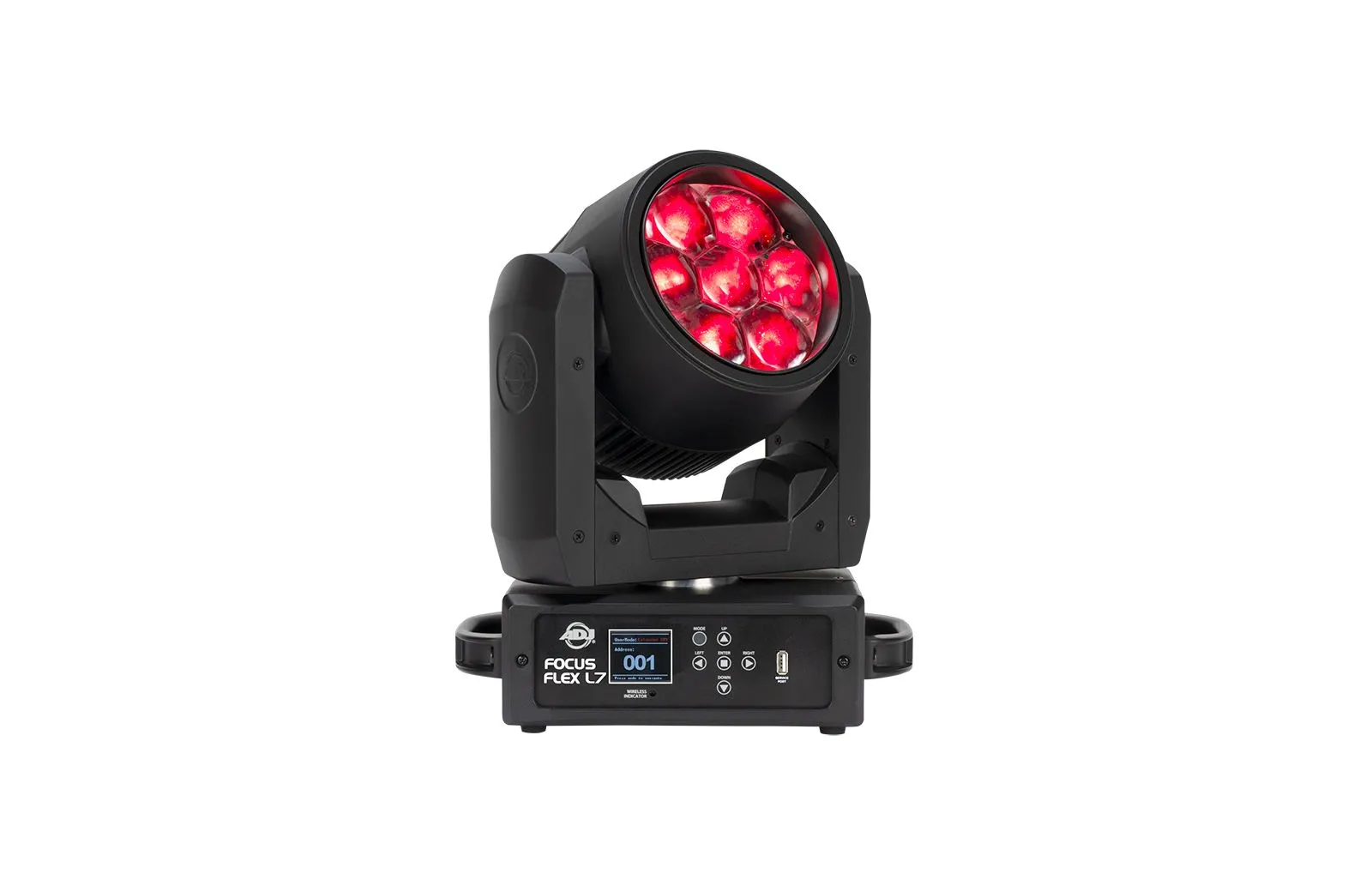 Το Focus Flex L7 είναι ένα φωτιστικό με 7 x RGBL LED λάμπες σε κυκλική διάταξη, σχεδιασμένο με υλικά υψηλής ποιότητας, εύκολο στη μεταφορά και στην αποθήκευση. Διαθέτει λαστιχένια «ποδαράκια» για σταθερή εγκατάσταση σε σκηνή ενώ εύκολα τοποθετείται σε τράσα με τον παρεχόμενο βραχίονα. Το Focus Flex L7 μπορεί να είναι μικρό σε μέγεθος αλλά η δυνατότητα wash είναι πραγματικά εντυπωσιακή. Οι 7 RGBL LED λάμπες είναι 40W η κάθε μία και παράγουν πολλές μοναδικές αποχρώσεις ενώ έχουν ανεξάρτητο χειρισμό η κάθε μία για την δημιουργία εφέ. Η κεφαλή κινείται με ακρίβεια στα σημεία που επιθυμεί ο χρήστης ενώ η δέσμη φωτός μπορεί να πλατύνει ή να μικρύνει ώστε να δώσει περισσότερες επιλογές στο wash.