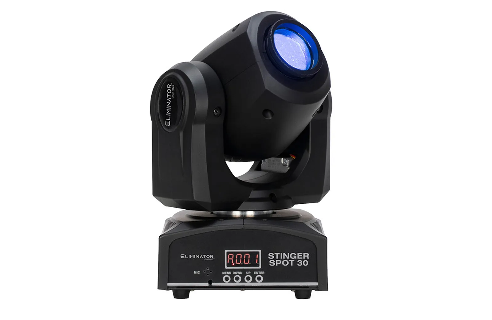 Eliminator Stinger Spot 30, mini επαγγελματική κινητή κεφαλή φωτισμού με LED 30W, ξεχωριστό GOBO και δίσκο χρωμάτων. Φορητή και εύκολη στην εγκατάσταση ελέγχεται με DMX-512, με προ-εγκατεστημένα προγράμματα ή αυτόματα με τον ήχο.