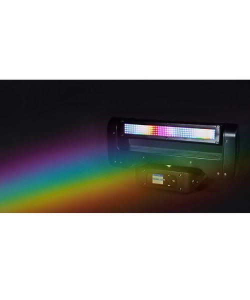 Κινούμενη κεφαλή που αποτελείται από 2 πάνελ με 250 φωτεινά RGB LEDs, τα οποία σε συνδυασμό με απεριόριστες κινήσεις Pan και Tilt προσφέρουν εντυπωσιακά εφέ που γεμίζουν τον χώρο από οποιαδήποτε θέση. Η μονάδα μπορεί να λειτουργήσει σε λειτουργία show, με ανίχνευση ήχου ή μέσω DMX και μπορεί να τοποθετηθεί ελεύθερα ή να στερεωθεί σε ικρίωμα με τον παρεχόμενο βραχίονα στήριξης. Ιδανική ως διακοσμητικό φως για μπαρ, νυχτερινά κέντρα και εκδηλώσεις, προσφέρει ατελείωτες δυνατότητες.