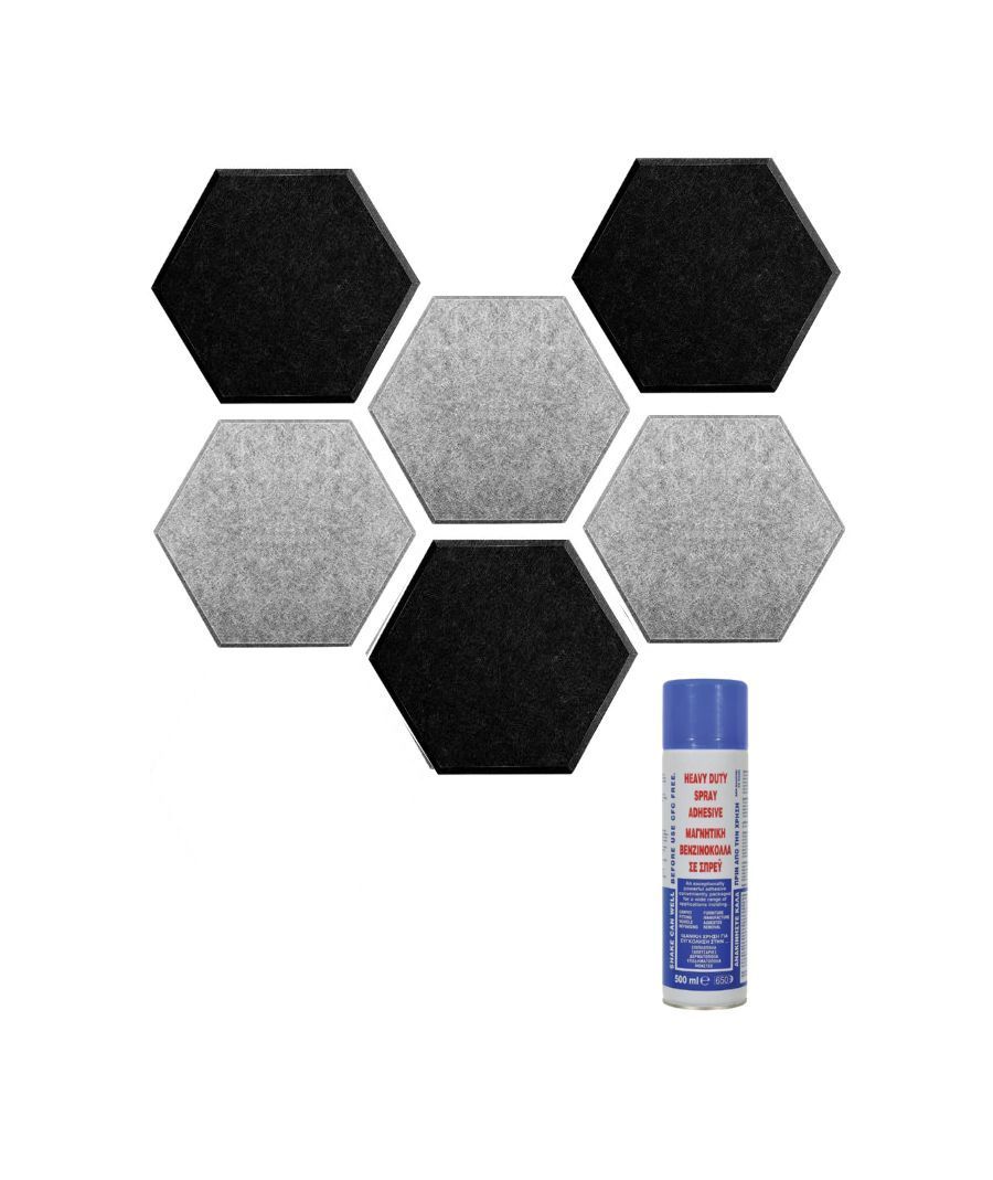 Audiodesigner PET Hexagon 6 Ηχοαπορροφητικά Πάνελ 20 cm Black-Grey / 1 τ.μ. με Βενζινόκολλα (Σετ)