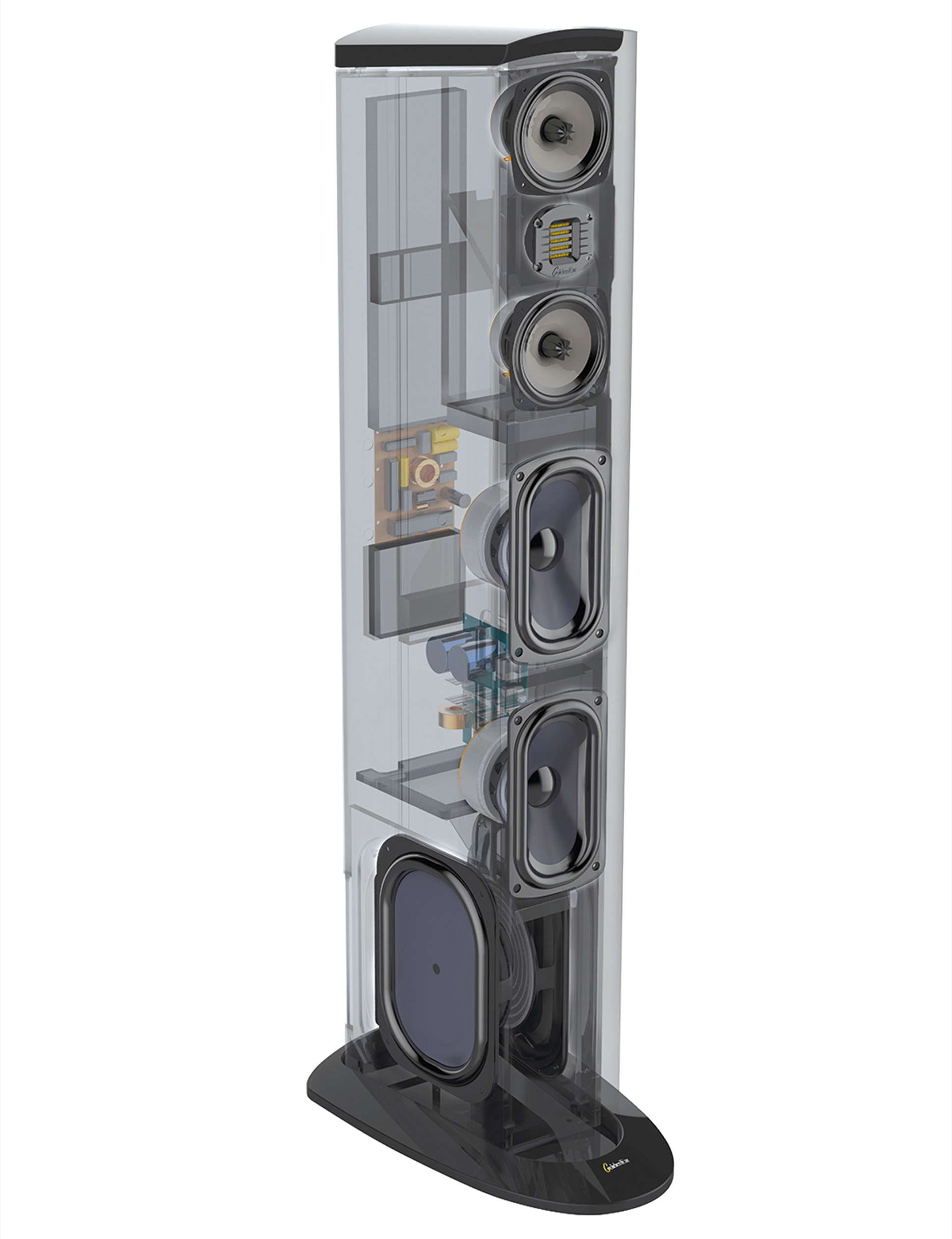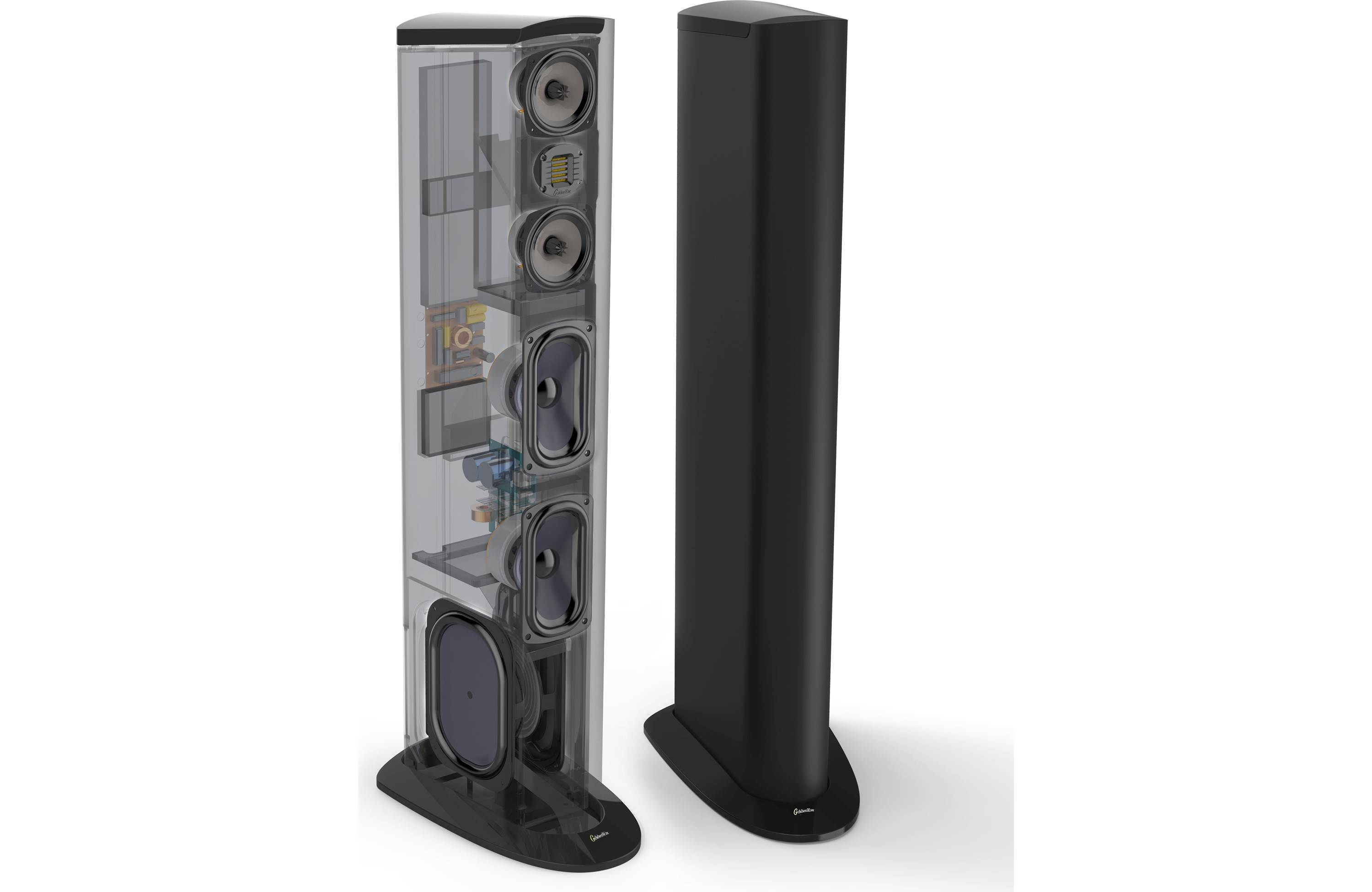 Το κομψό Triton Two+ ύψους 48 ιντσών ενσωματώνει πολλές από τις τεχνολογίες και τις βελτιώσεις που αναπτύχθηκαν για το Triton One, συμπεριλαμβανομένου ενός πλήρως ισορροπημένου σχεδιασμού crossover, πυκνωτών υψηλής ποιότητας, επανασχεδιασμένων οδηγών μεσαίων/ανώτερων μπάσων και ενός επαναπρογραμματισμένου DSP. Το ενσωματωμένο τμήμα του subwoofer τροφοδοτείται από έναν ψηφιακό ενισχυτή GoldenEar ForceField 1200 watt που οδηγεί δύο οδηγούς μπάσων subwoofer 5″ x 9″ τοποθετημένους στο μπροστινό μέρος, σε συνδυασμό με δύο αντίθετα τοποθετημένους, αδρανειακά ισορροπημένους, 7″ x 10″ Quadratic Planar Back-Wave-Driven Radiators. Τα δύο 4-1/2″ spider-leg cast-basket midrange/upper bass drivers, τα οποία ενσωματώνουν το αποκλειστικό σχεδιασμό Multi-Vaned Phase Plug (MVPP™) της GoldenEar, είναι τοποθετημένα σε δύο διακριτούς θαλάμους διατεταγμένους σε διάταξη D’Appolito που περιβάλλει το εξαιρετικό σχεδιασμό του High-Velocity Folded Ribbon AMT tweeter της GoldenEar. Η δυναμική, αβίαστη και ρεαλιστική καθαρότητα του Triton Two θα μεταφέρει κυριολεκτικά τη ζωντανή παράσταση ή δράση στο σπίτι σας ή, αντίστροφα, θα σας μεταφέρει στην αίθουσα συναυλιών ή στη ζωντανή δράση στην οθόνη.