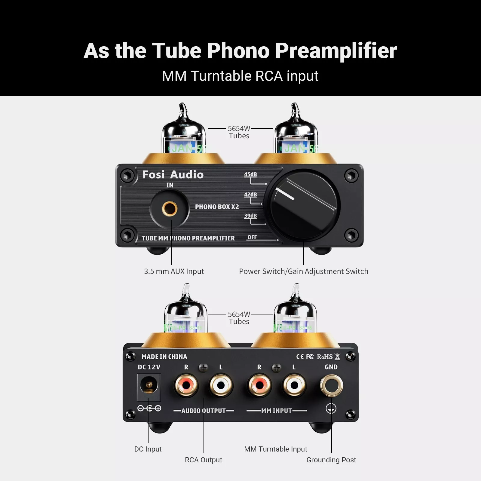 - Tube Preamplifier: With a 3.5mm AUX input, it's also a tube preamp. Fosi Audio used high-quality component parts for the design and assemblage of this phono preamplifier. You can enjoy a very warm and smooth sound