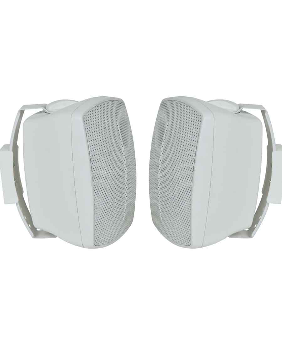 Ηχεία υψηλής ποιότητας IP44 ανθεκτικά στις καιρικές συνθήκες με εκτεταμένο οδηγό χαμηλής συχνότητας και tweeter θόλου που στεγάζονται σε ένα αποτελεσματικά σχεδιασμένη διαμορφωμένη καμπίνα. Κάθε ηχείο παρέχεται με ένα ρυθμιζόμενο στήριγμα τοίχου, που μπορεί επίσης να ρυθμιστεί σε διάφορες θέσεις κλίσης για αποτελεσματική κατευθυντικότητα. Σχεδιασμένο για μουσική υπόκρουση σε εσωτερικούς ή εξωτερικούς χώρους και εφαρμογές δημόσιας διεύθυνσης (public address).