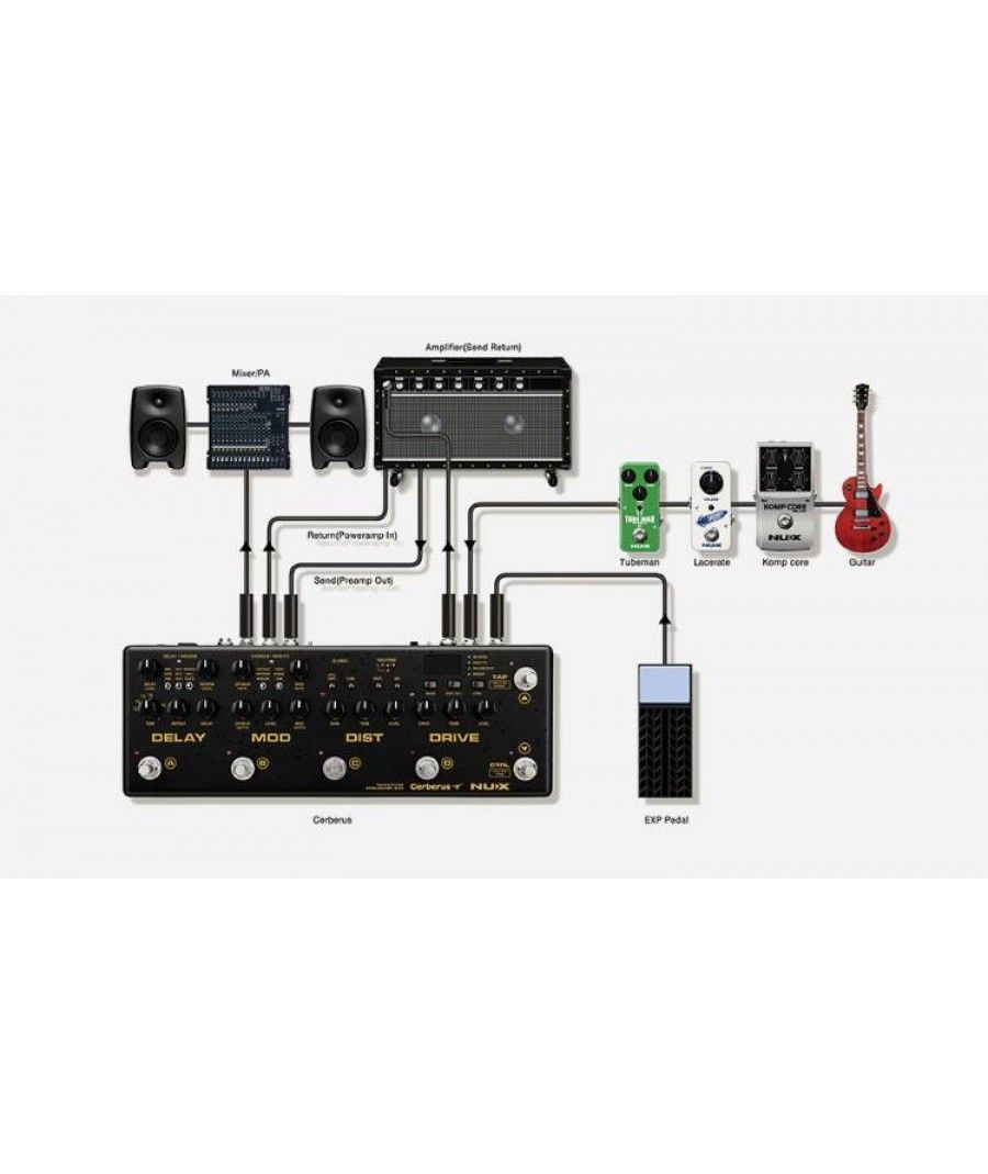 Το Cerberus είναι ένα πεντάλ εφέ πολλαπλών λειτουργιών που μπορεί να χρησιμοποιηθεί αυτόνομο ή με τη μέθοδο 4 καλωδίων και είναι γεμάτο με εξαιρετικές δυνατότητες όπως εσωτερική δρομολόγηση, IR loader, αναλογικό overdrive & παραμόρφωση και ψηφιακά εφέ. Μπορείτε να χρησιμοποιήσετε το Cerberus ως αυτόνομη συσκευή για να προετοιμάσετε τη ρύθμιση και τον έλεγχό σας ως αλυσίδα stomp-box ή / και να αποθηκεύσετε τυχόν συνδυασμούς, συμπεριλαμβανομένης της δρομολόγησης ως preset και της ανάκλησης με ένα μόνο κλικ. Μπορείτε να προσθέσετε τα βασικά σας εφέ στην αλυσίδα με τη μέθοδο 4 καλωδίων ανεξάρτητα από τον εξοπλισμό που χρησιμοποιείτε. Το Cerberus προσφέρει επίσης έλεγχο MIDI για να οργανώσετε τα δικά σας πεντάλ εφέ και να βελτιώσετε τον έλεγχο εφέ ταυτόχρονα. Έχουμε συγκεντρώσει 2 επιλεγμένα αναλογικά πεντάλ Drive / παραμόρφωσης, εφέ διαμόρφωσης και εφέ "καθυστέρησης" και αντήχησης.