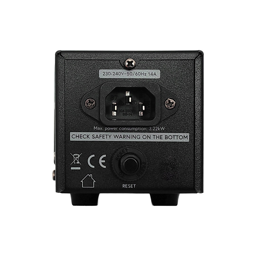 Design DC blocker Sockets 1 x Schuko type (230V – 240V) Total maximum power load 14A, 3220W Incoming DC blocking Do 12000mV (12V) Features / accessories Overload protection